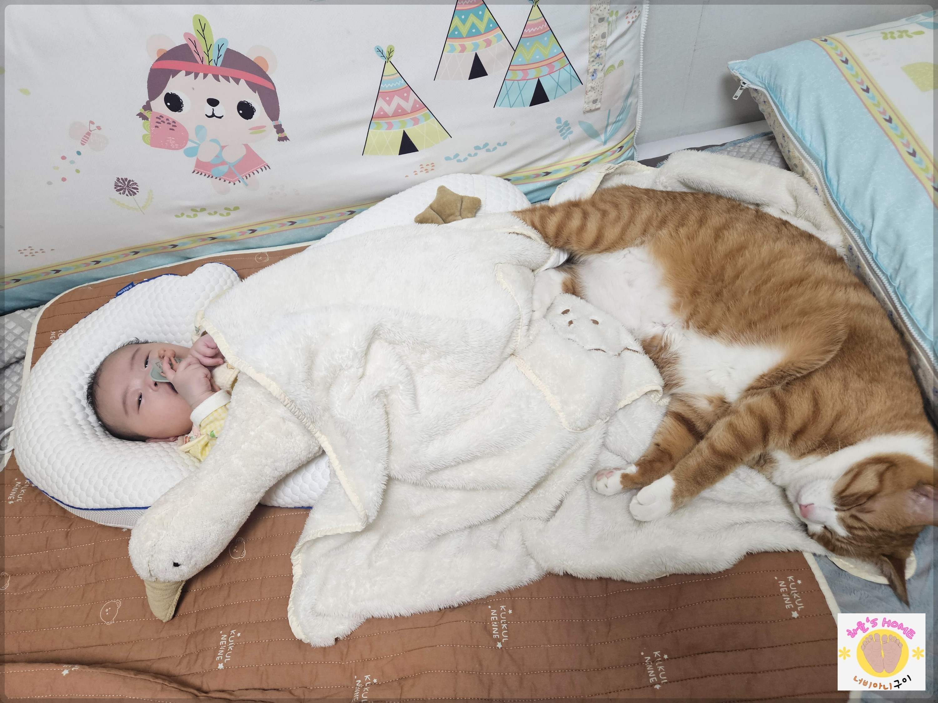 처음엔 하악질을 하던 고양이도 시간이 지나면서 아기를 가족으로 받아들였습니다. 이제는 아기가 울면 저