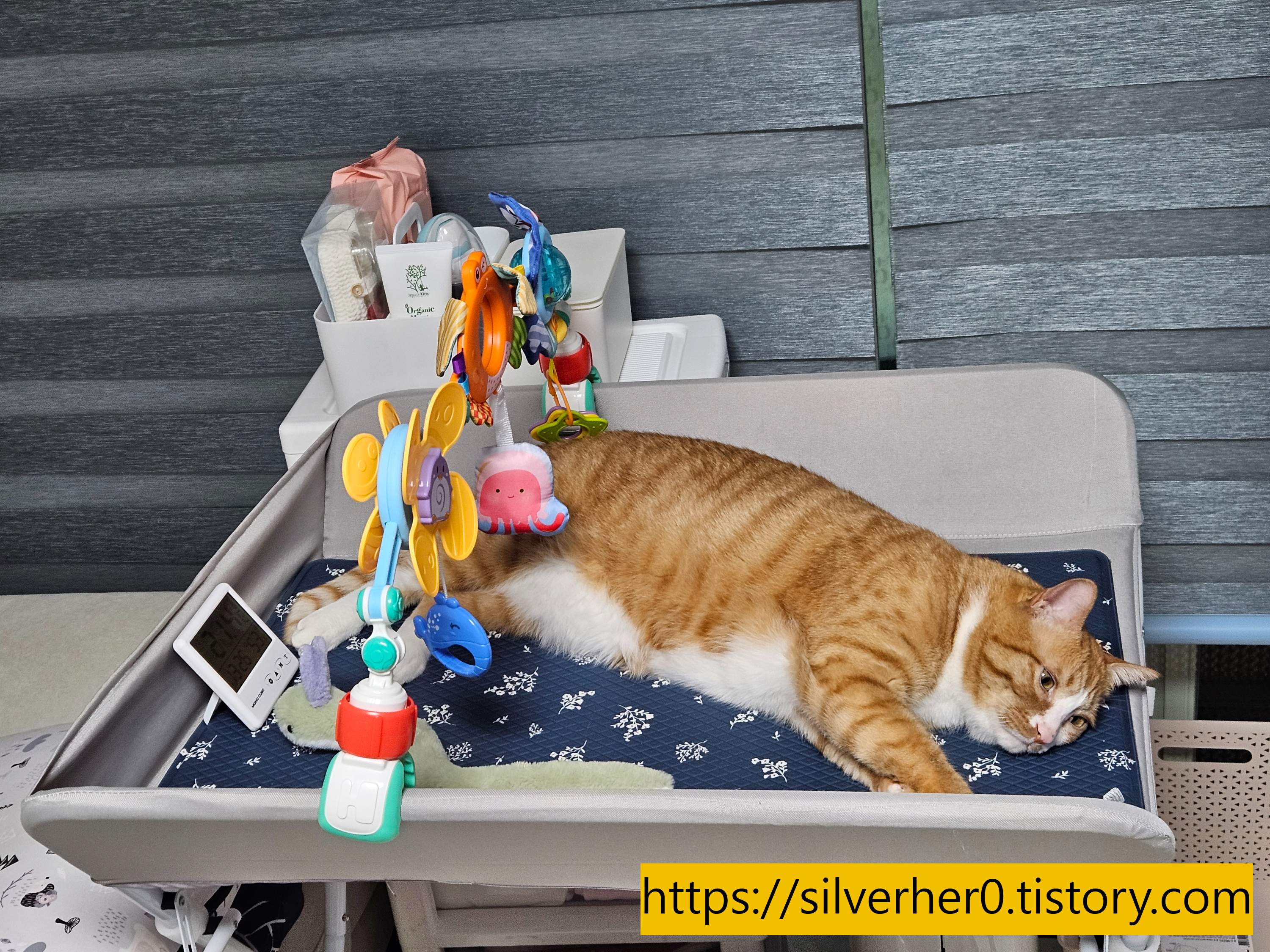 고양이 행동을 막기보다 관찰하는 것도 중요했죠. 아기 울음소리가 나면 고양이는 대부분 다른 방으로 이동하거나 높은 곳으로 올라갔고, 아기에게 가까이 오지 않는 선택을 하는 모습을 보며, 굳이 더 통제할 필요는 없겠다는 생각이 들었어요.